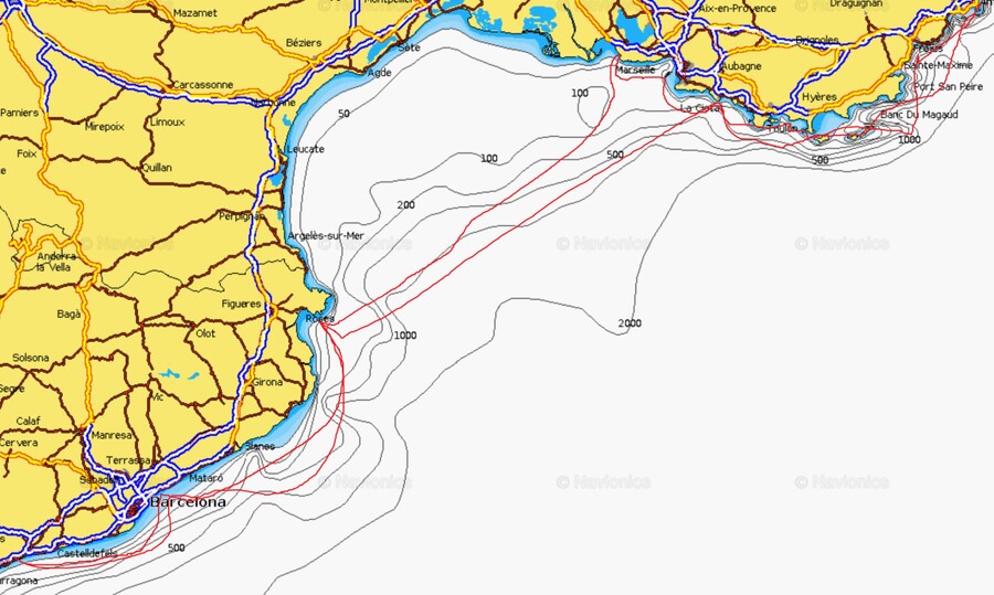 Die zweite Reise im Juli bis September ging über Barcelona, Marseille entlang der Côte d’Azur bis bis zu den Inseln vor Cannes. Und wieder zurück nach Roda de Bara.