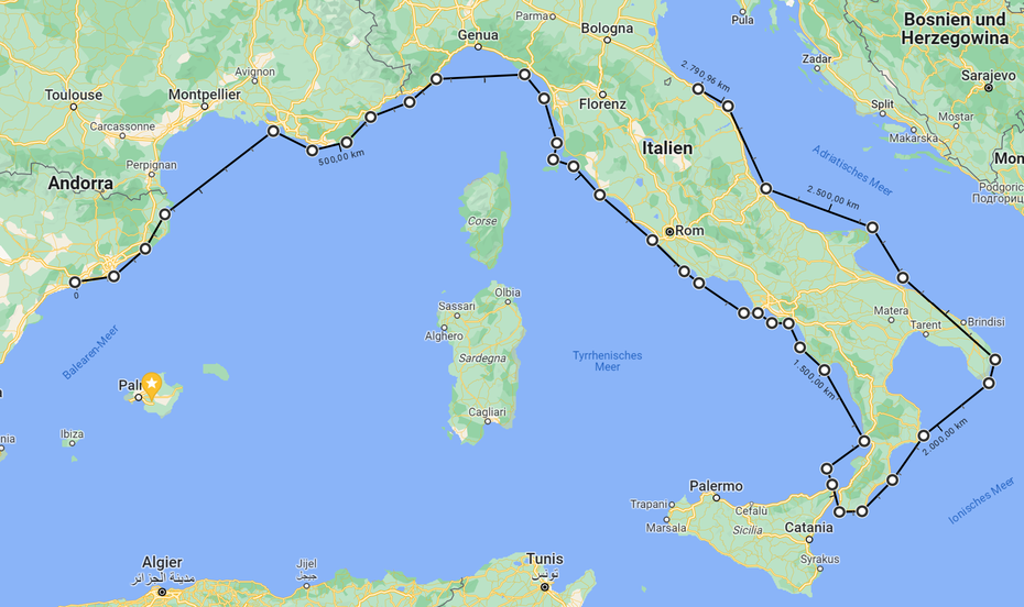 Am 10. August 2023 haben wir Torredembara (Tarragona) in Spanien verlassen. Ende Oktober kamen wir in Fano an. Es waren genau 1.740 Seemeilen, die das Schiff nahezu problemlos bewältigt hat.